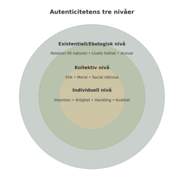 Autenticitet avser här inte ett ideal att leva upp till, utan ett villkor som måste vara uppfyllt för att ett intentionalistiskt förhållningssätt ska fungera över tid. Begreppet beskriver hur olika delar i mänskligt handlande hänger samman – från värderingar och intentioner till handlingar och deras konsekvenser – och vad som sker när denna samklang finns, respektive saknas. I detta sammanhang är autenticitet det som binder samman kedjan.
