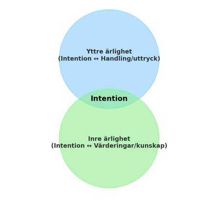 Intentionen utgör här ett centralt nav. Den förbinder det inre sammanhanget (värderingar, uppfattningar, känslor) med det yttre sammanhanget (handlingar, relationer, strukturer). Intentionen är därför inte ensidigt riktad, utan formas både av inre övertygelser och av den verklighet där handlingen ska få verkan.